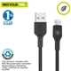 Cable para carga y transferencia de datos con conector USB a Micro USB, 2,4A transferencia rápida, 1,2m de longitud, en color negro y 100% reciclable. Con un diseño patentado y homologado con el certificado CRS, conforme son productos reciclables y hechos con productos reciclados. Carga tus dispositivos cuidando el planeta en el proceso, y llévate de regalo un organizador de cables gratuito.