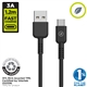 Cable para carga y transferencia de datos con conector USB a Tipo C, 3A transferencia rápida, 1,2m de longitud, en color negro y 100% reciclable. Con un diseño patentado y homologado con el certificado CRS, conforme son productos reciclables y hechos con productos reciclados. Carga tus dispositivos cuidando el planeta en el proceso, y llévate de regalo un organizador de cables gratuito.