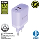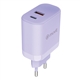 Cargador de pared con clavija europea de un alegre color lavanda. Dispone de 1 USB 18W + 1 Tipo C PD 45W de potencia para carga rápida y está fabricado con materiales de origen certificado RCS - RECYCLED CLAIM STANDARD y 100% reciclable. (cable no incluido).