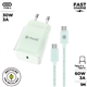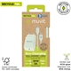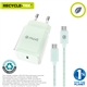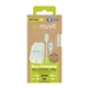 Pack de muvit for change compuesto de un cargador de pared de 1 puerto Tipo-C 30W con un diseño compacto y estilizado y un cable de 1 metro de Tipo-C a Tipo-C. Hecho con plásticos reciclados y reciclables y con un packaging ECO que cuida del medio ambiente.