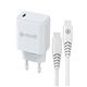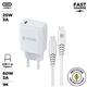 Nuestro Pack muvit for Change que incluye un cargador de pared con clavija europea de diseño fino, está fabricado con material PC 100% reciclado (certificado GRS) y 100% reciclable. Dispone de 1 puerto USB-Tipo C 30W de potencia carga rápida, más un cable con material TPE (certificado GRS) y 100% reciclable para carga y transferencia de datos con conector tipo C a tipo C, 3A de 1m de longitud, color blanco.